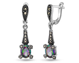 Серьги из чернёного серебра с ониксом и марказитами 925 пробы HE1750-ON-LK