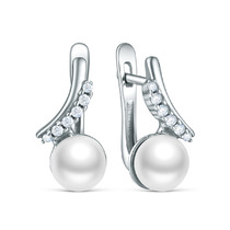Серьги из серебра с культивированным жемчугом и фианитами родированные С50273