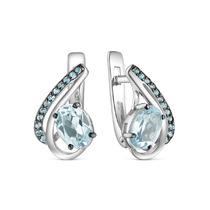 Серьги из серебра с натуральным топазом и фианитами родированные 925 пробы 2-436