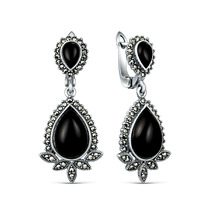 Серьги из чернёного серебра с ониксом и марказитами 925 пробы HE1028-ON-LK