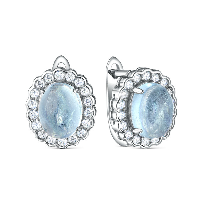 Серьги из серебра c голубым аквамарином и кубическим цирконием родированные 925