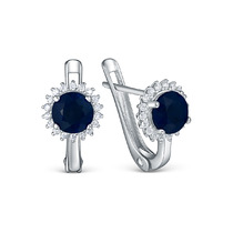 Серьги из серебра с сапфиром и кубическим цирконием родированные 925 пробы GTE-3
