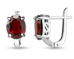 Серьги-пусеты из серебра с синт. рубином и фианитами родированные