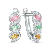 Серьги из серебра с турмалином микс и фианитами родированные 925 пробы С-093р428