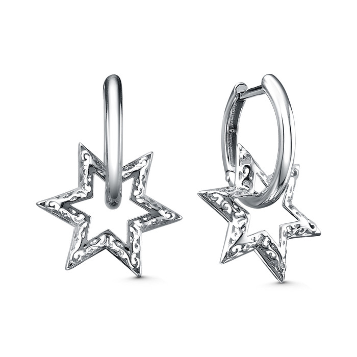 Совместные закупки Екатеринбург Ювелирные украшения и бижутерия Серьги — Серьги из серебра родированные - Звёзды (трансформеры, 2 в 1) 925 пробы С-4804-Р