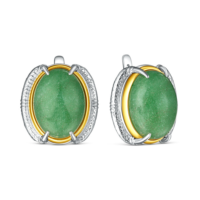 Серьги из серебра с авантюрином и позолотой родированные 925 пробы С50170рз482
