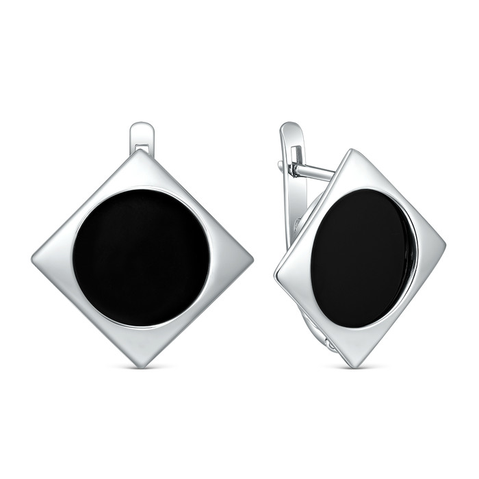 Совместные закупки Екатеринбург Ювелирные украшения и бижутерия Серьги — Серьги из серебра с чёрным агатом родированные 925 пробы С-4039-Р-Ча