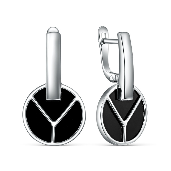 Совместные закупки Екатеринбург Ювелирные украшения и бижутерия Серьги — Серьги из серебра с чёрным агатом родированные С-4996-Р-Ча