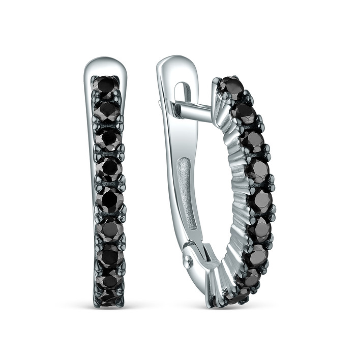 Совместные закупки Екатеринбург Ювелирные украшения и бижутерия Серьги — Серьги из серебра с чёрными фианитами родированные 925 пробы с-7237р216