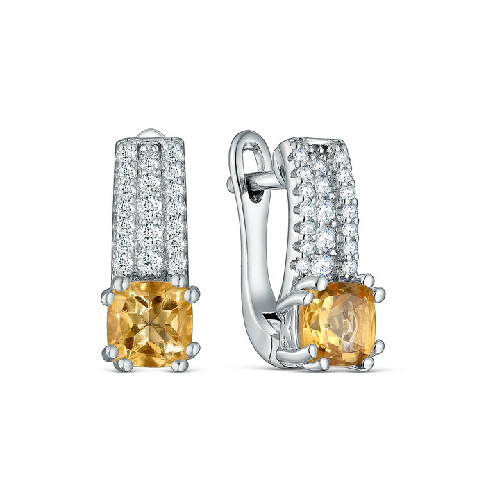 Совместные закупки Екатеринбург Ювелирные украшения и бижутерия Серьги — Серьги из серебра с цитрином и кубическим цирконием родированные 925 пробы GTE-1