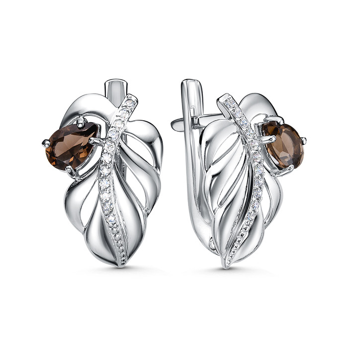 Совместные закупки Екатеринбург Ювелирные украшения и бижутерия Серьги — Серьги из серебра с дымчатым кварцем и фианитами родированные 2-4148-001