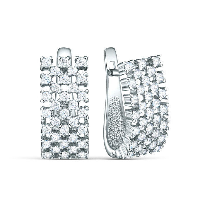 Серьги из серебра с фианитами родированные 11-2208