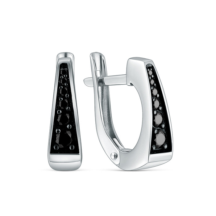 Серьги из серебра с фианитами родированные 3155028352