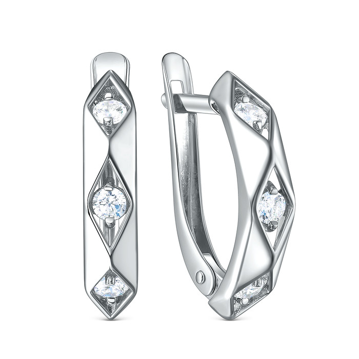 Серьги из серебра с фианитами родированные 925 пробы 421-10-752р