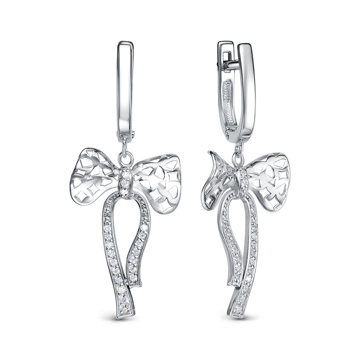 Совместные закупки Екатеринбург Ювелирные украшения и бижутерия Серьги — Серьги из серебра с фианитами родированные - Банты 221-10-269-1р