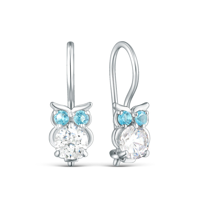 Совместные закупки Екатеринбург Ювелирные украшения и бижутерия Серьги — Серьги из серебра с фианитами родированные - Совы 925 пробы S2180521010р202