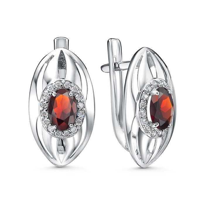 Серьги из серебра с гранатом и фианитами родированные 2-3501-001