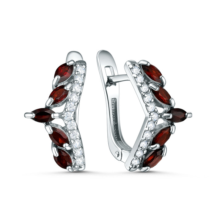 Серьги из серебра с гранатом и фианитами родированные 4-211р404