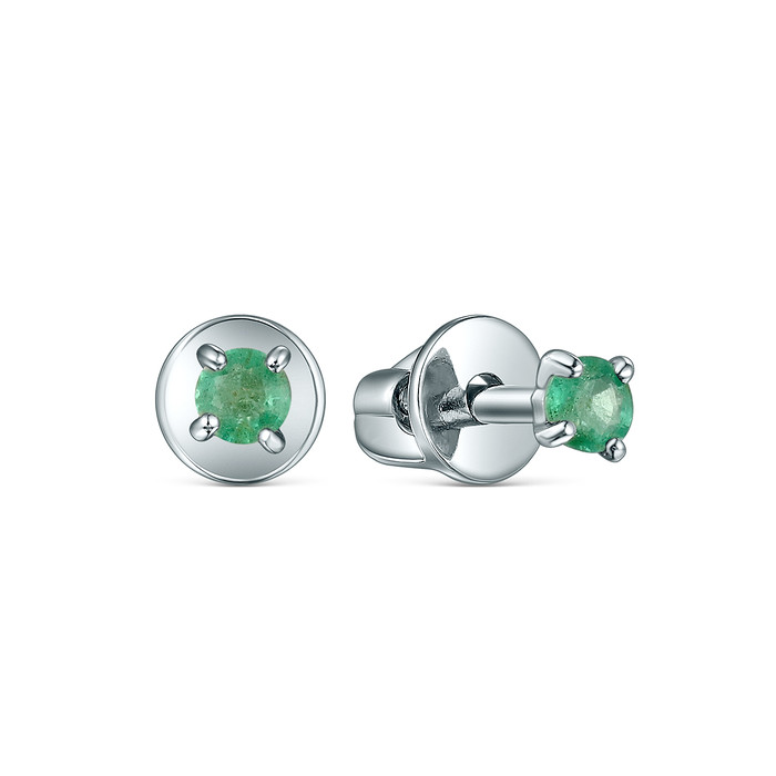 Совместные закупки Екатеринбург Ювелирные украшения и бижутерия Серьги — Серьги-пусеты из серебра с изумрудом родированные 04-202-0159-33