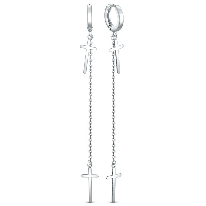 Серьги из серебра с крестами на цепи родированные 925 пробы 21054р
