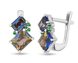 Серьги, мистик кварц синий , наноизумруд, Искра