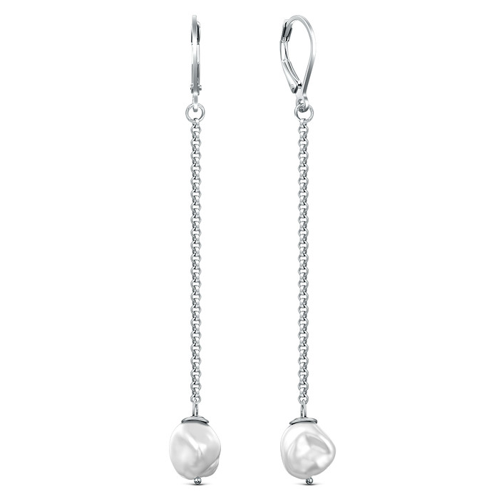 Серьги из серебра с культивированным барочным жемчугом родированные 925 пробы 15