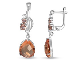 Серьги-пусеты из серебра с фианитами родированные 925 пробы с-7249р216