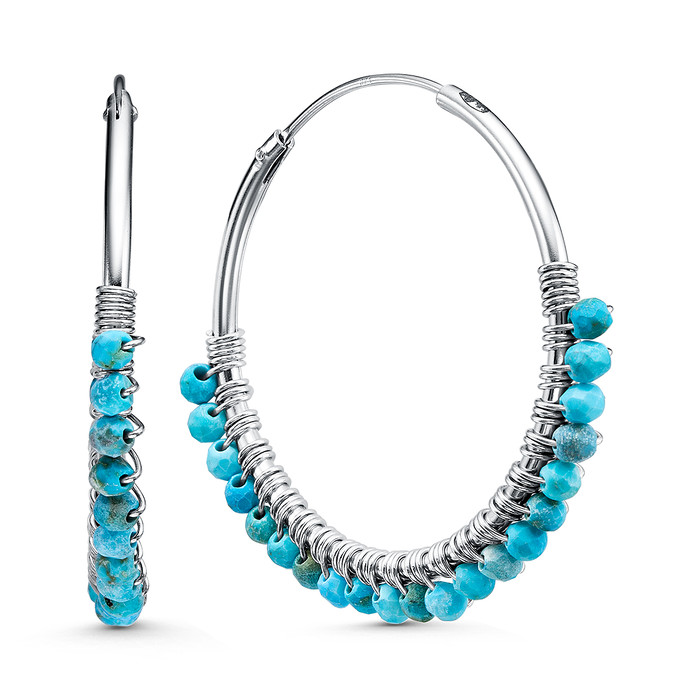 Совместные закупки Екатеринбург Ювелирные украшения и бижутерия Серьги — Серьги из серебра с натуральным бирюзовым хаулитом родированные 925 пробы 14500H