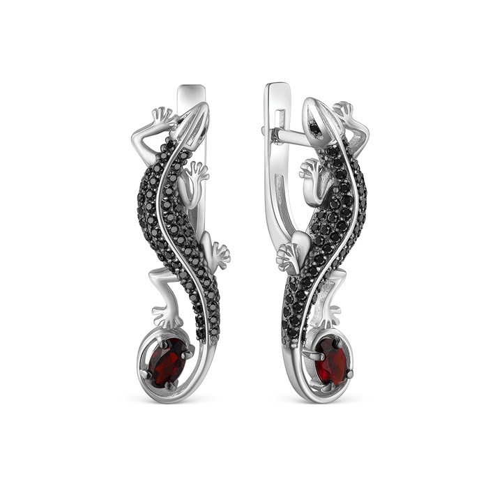Серьги из серебра с натуральным гранатом и натуральной шпинелью родированные - Я