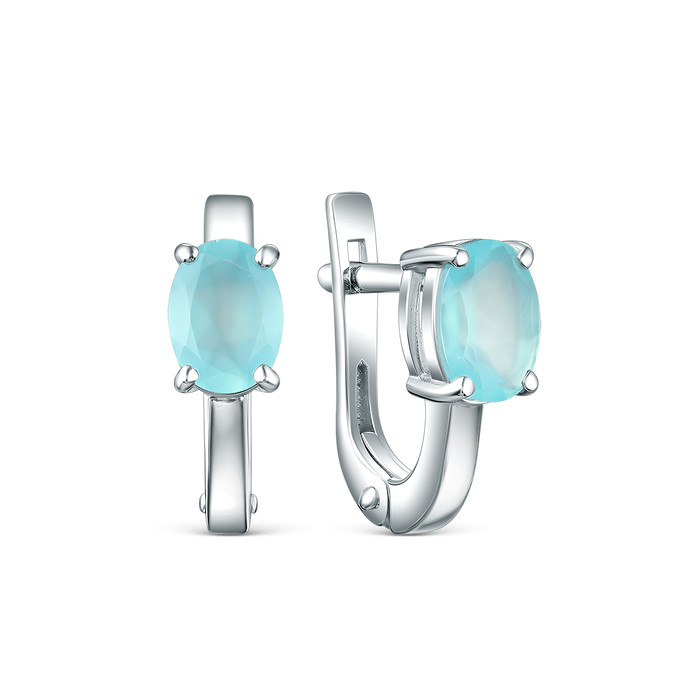 Совместные закупки Екатеринбург Ювелирные украшения и бижутерия Серьги — Серьги из серебра с натуральным халцедоном родированные 925 пробы С-0103-52-09