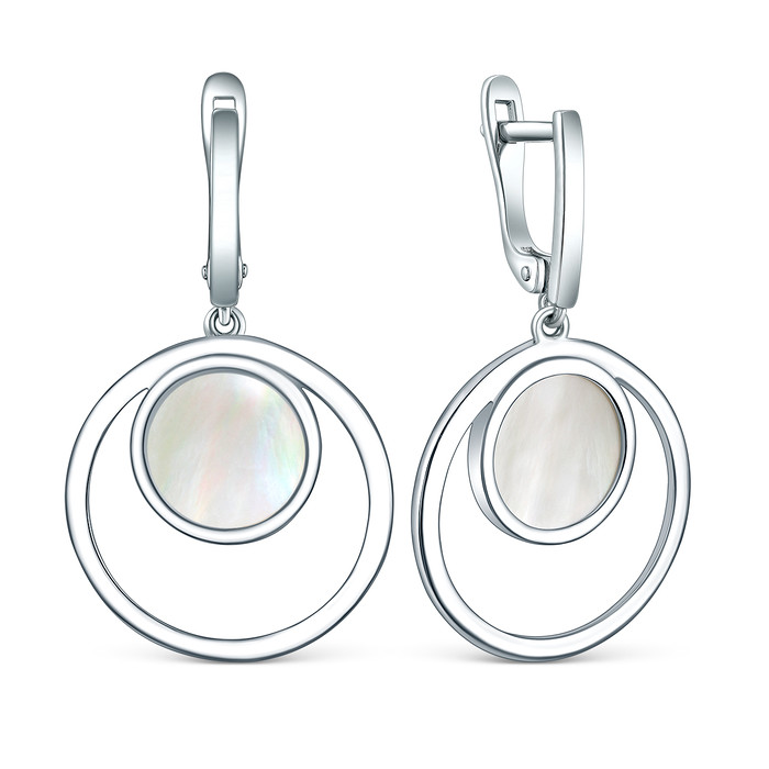 Совместные закупки Екатеринбург Ювелирные украшения и бижутерия Серьги — Серьги из серебра с натуральным перламутром родированные - Круги 925 пробы С-453
