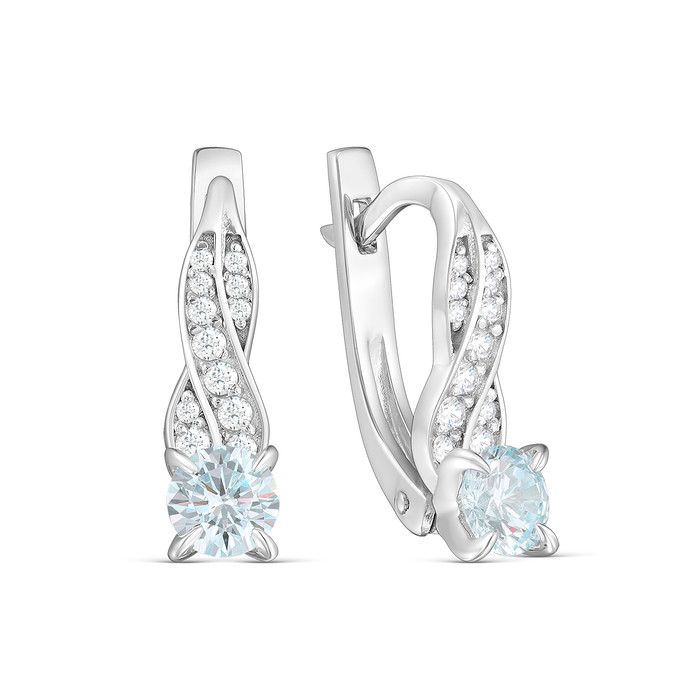Серьги из серебра с натуральным топазом и фианитами родированные 925 пробы 2-367