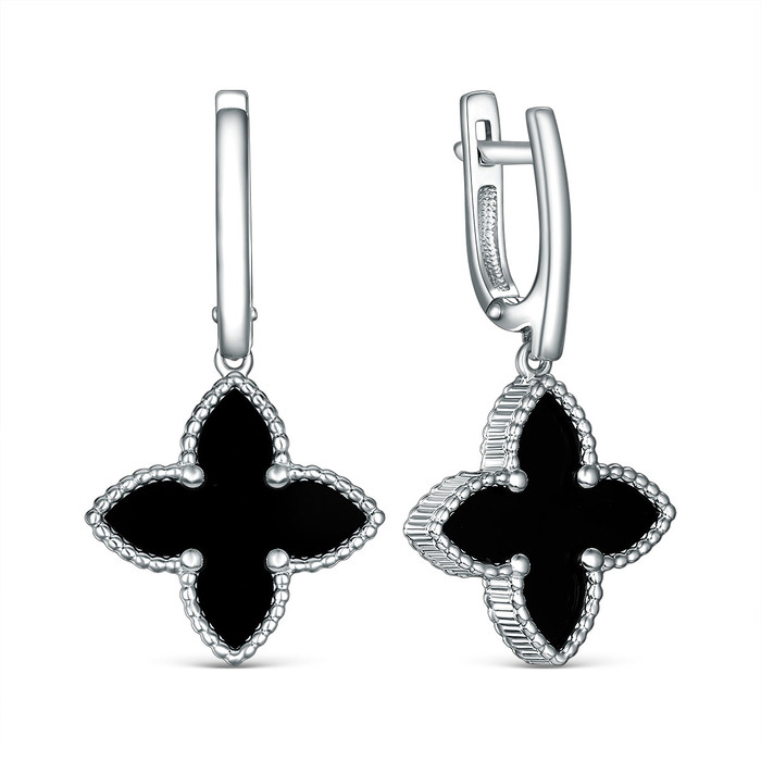 Совместные закупки Екатеринбург Ювелирные украшения и бижутерия Серьги — Серьги из серебра с ониксом родированные - Четырёхлистник 925 пробы 221-10-116р