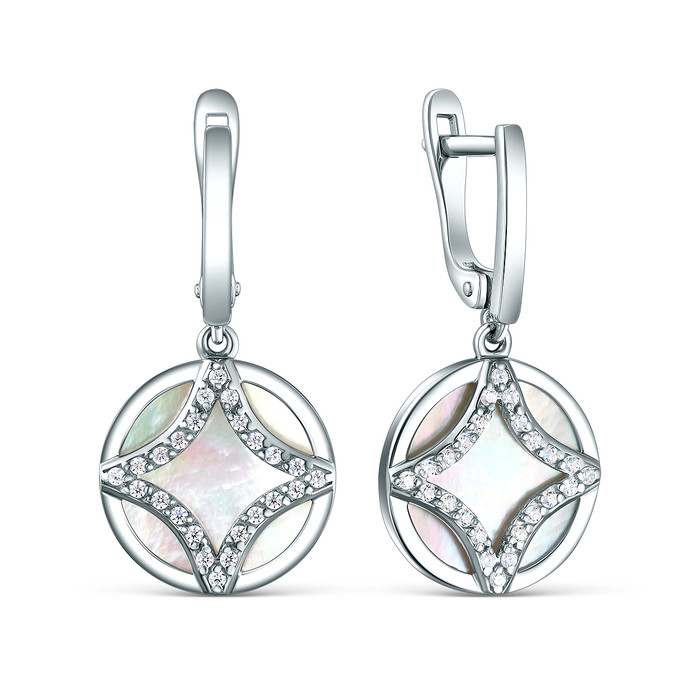 Совместные закупки Екатеринбург Ювелирные украшения и бижутерия Серьги — Серьги из серебра с перламутром и фианитами родированные 925 пробы С-4528-Р