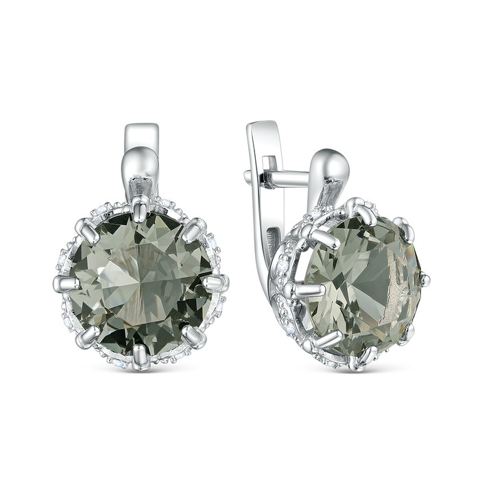 Совместные закупки Екатеринбург Ювелирные украшения и бижутерия Серьги — Серьги из серебра с плавленым кварцем цвета дымчатый и фианитами родированные 92