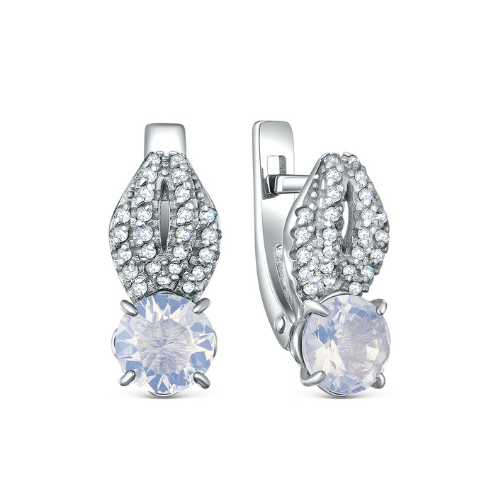 Совместные закупки Екатеринбург Ювелирные украшения и бижутерия Серьги — Серьги из серебра с плавленым кварцем цвета лунный камень и фианитами родированн