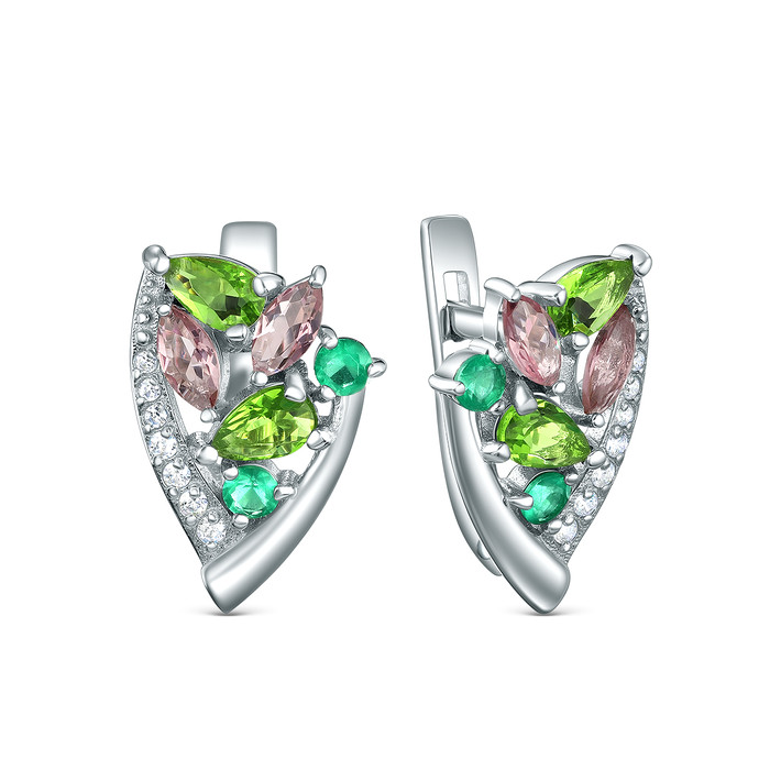 Совместные закупки Екатеринбург Ювелирные украшения и бижутерия Серьги — Серьги из серебра с плавленым кварцем микс и фианитами родированные 925 пробы 2-