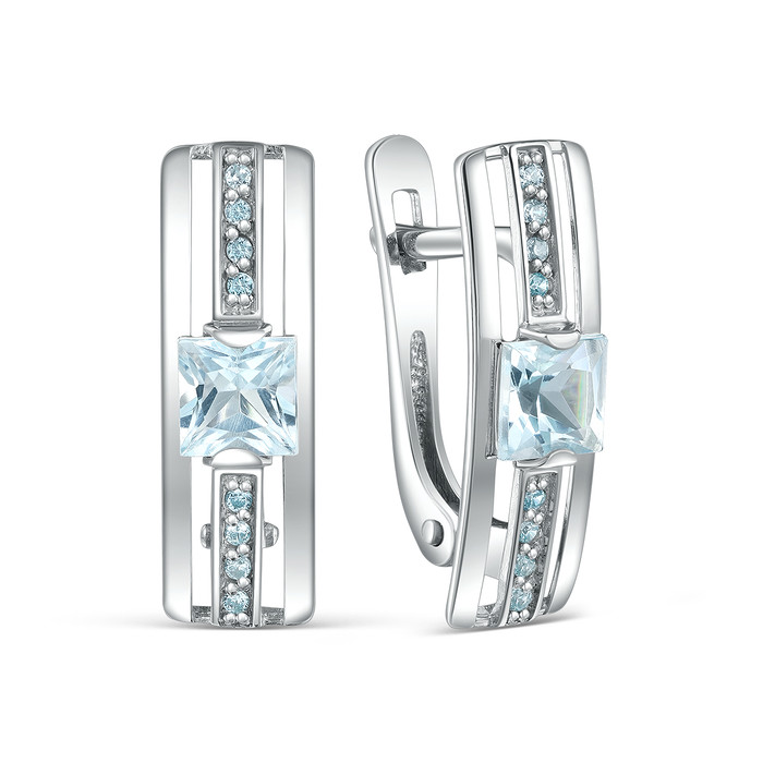 Совместные закупки Екатеринбург Ювелирные украшения и бижутерия Серьги — Серьги из серебра с sky топазом и фианитами родированные 925 пробы 04-202-0433-0