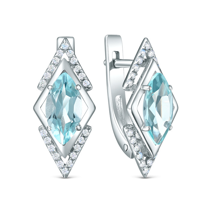 Серьги из серебра с топазом sky и фианитами родированные 2-635р40300