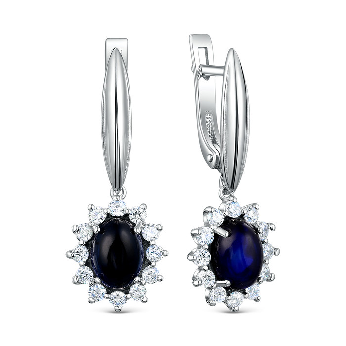 Серьги из серебра с янтарём и фианитами родированные 925 пробы 04-802-0056-07