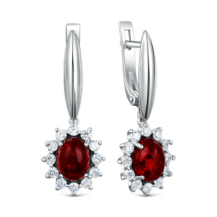 Серьги из серебра с янтарём и фианитами родированные 925 пробы 04-802-0056-16