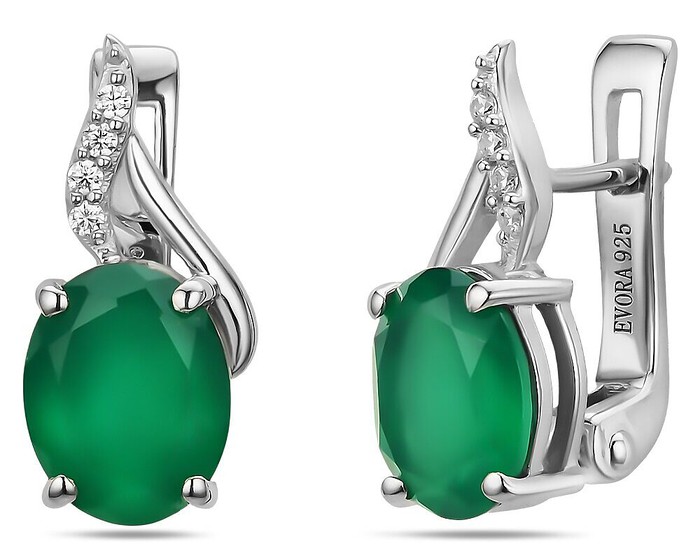 Серьги, арт.632288 Серебро Серебро 925, 3,9 гр., зеленый агат