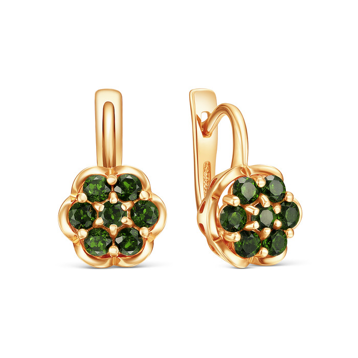 Совместные закупки Екатеринбург Ювелирные украшения и бижутерия Серьги — Серьги из золочёного серебра с хромдиопсидом 925 пробы С-4000зс487
