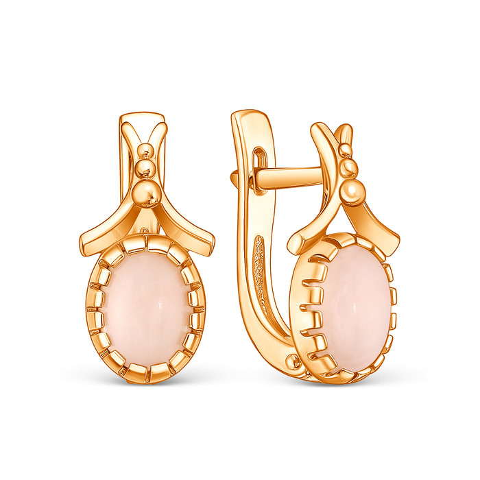 Серьги из золочёного серебра с розовым опалом 925 пробы С-3801зк1171