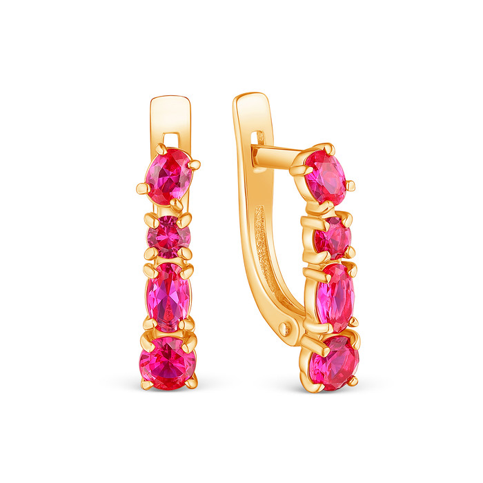 Серьги из золочёного серебра с синтетическам рубином 925 пробы С-4011зс915н