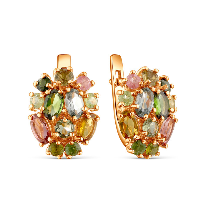 Совместные закупки Екатеринбург Ювелирные украшения и бижутерия Серьги — Серьги из золочёного серебра с турмалином мульти 925 пробы 2-472з428