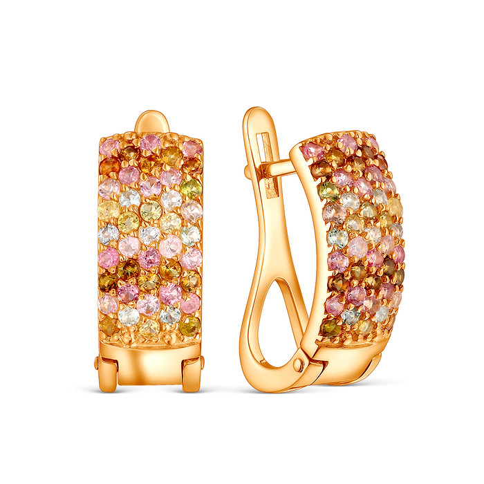 Серьги из золочёного серебра с турмалином мульти 925 пробы 2-473з428