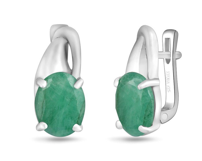 Серьги, арт.656177 Серебро Серебро 925, 2,96 гр., изумруд берилл
