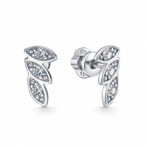 Серьги из золочёного серебра с пл.кварцем цв.лунный камень и фианитами