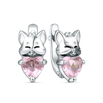 Серьги из серебра с эмалью и фианитами родированные - Лисички с сердцем 2313065